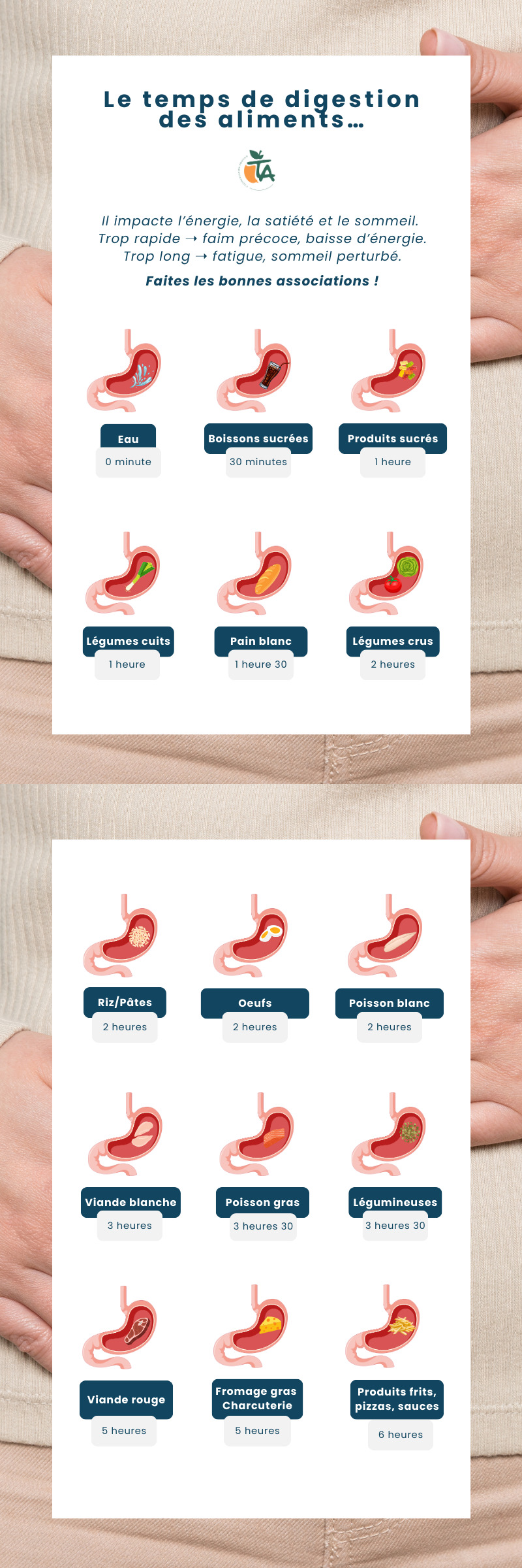 La durée de digestion des aliments joue sur l’énergie, la satiété et le sommeil.